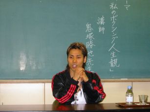 - 2004年5月13日(木)19:30より、福岡市立心身障害福祉センター(あいあいセンター)7階中研修室にて、『元世界ジュニア・バンダム級チャンピオン 鬼塚勝也氏』を講師としてお招きし、講演会(勉強会)を行いました。
